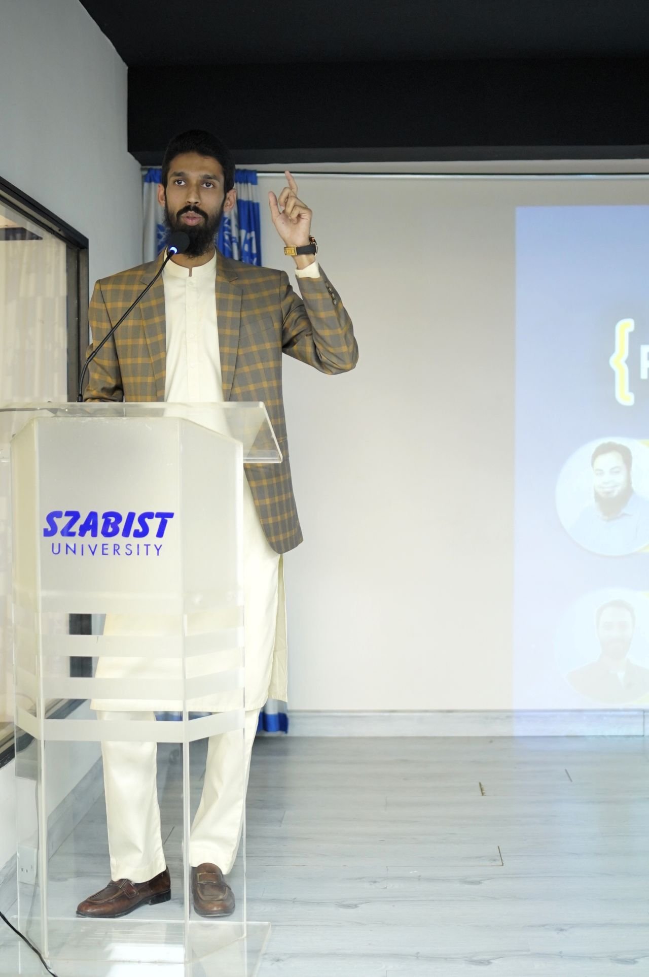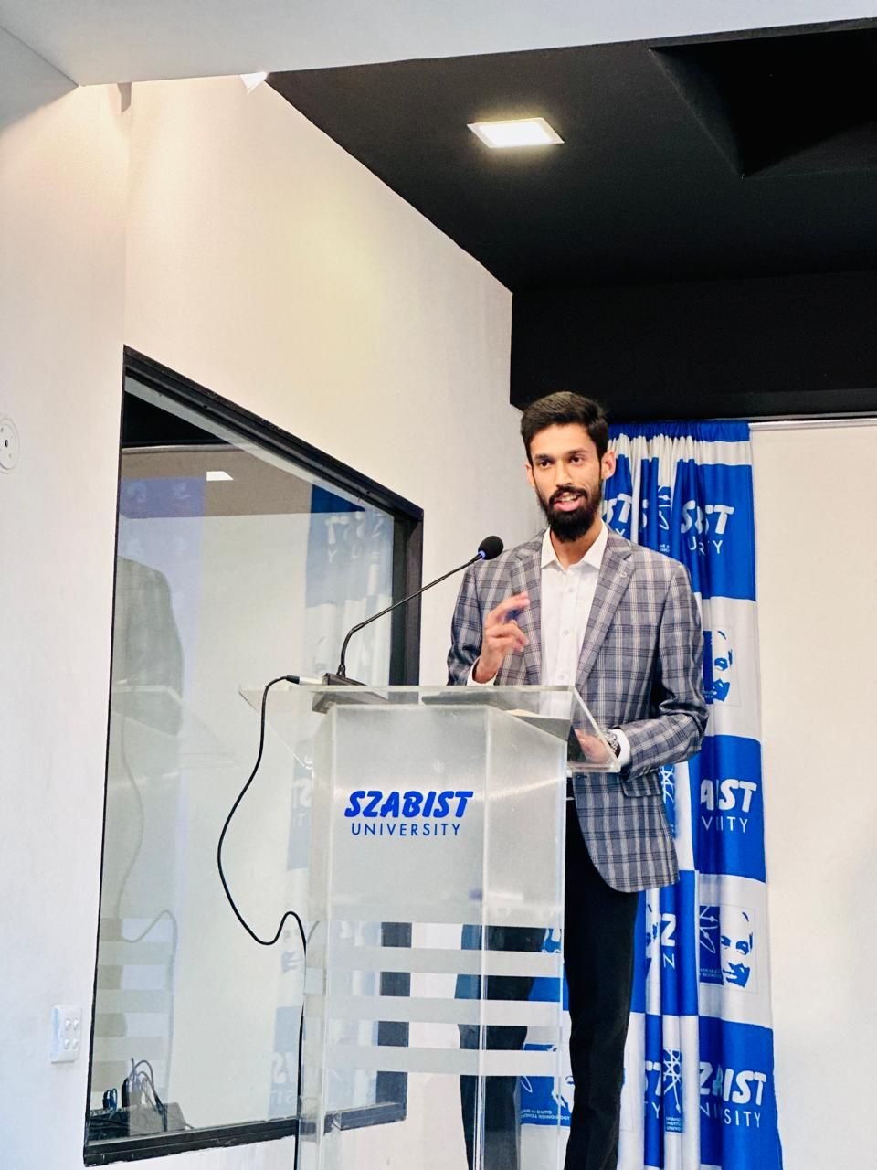 At SZABIST university: spoke with the Students in the orientation session 2023