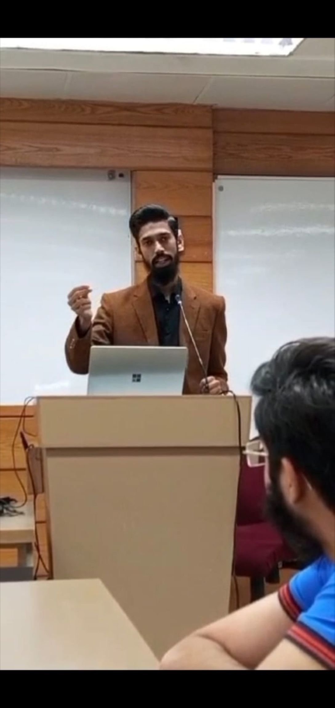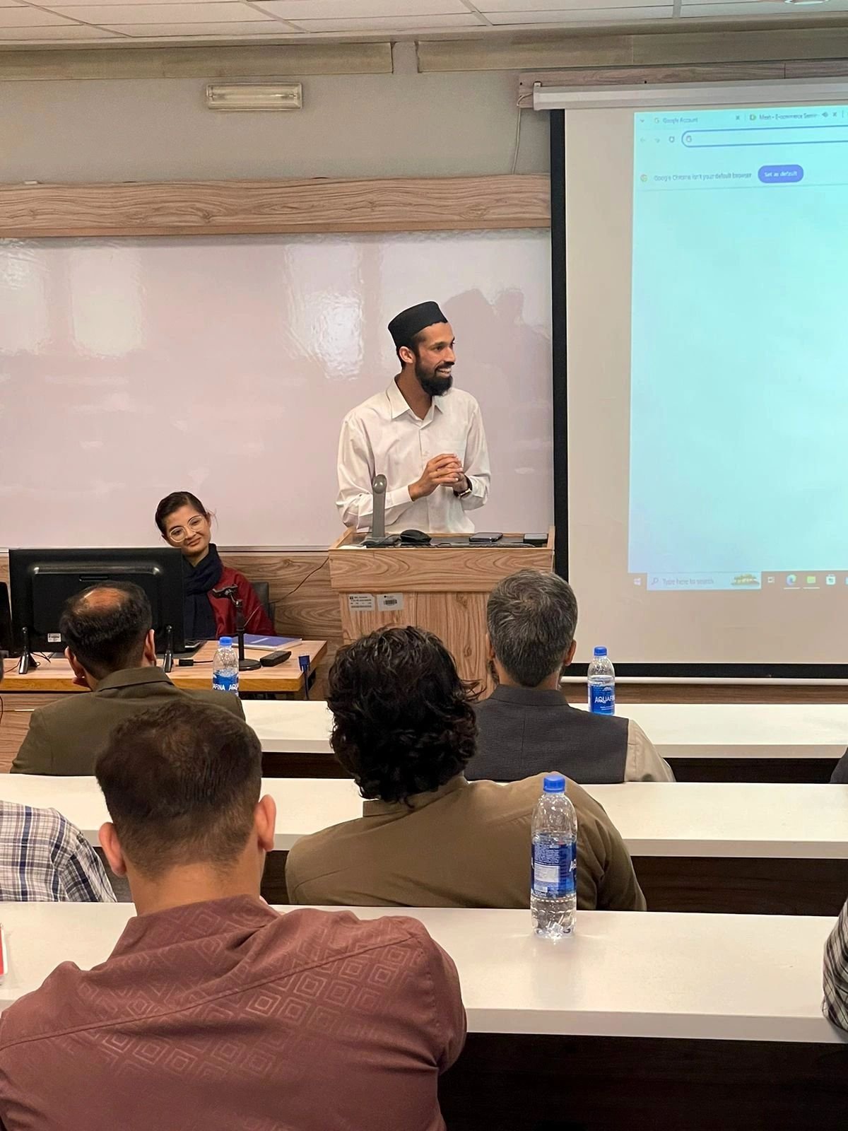 At Iqra University: Delivered a session on how aspiring fresh and soon-to-be graduates can embark on their professional journey and establish successful futures, even with limited experience (2023).