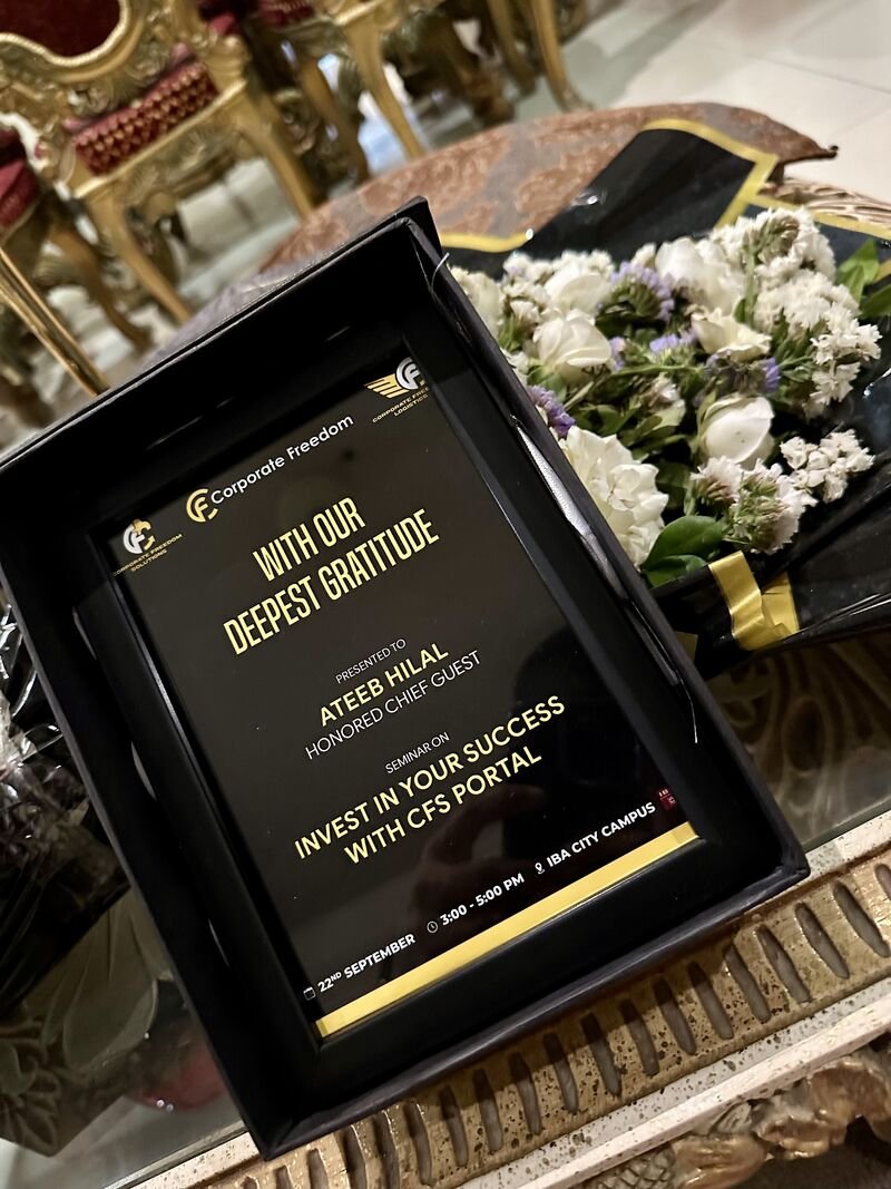Honored chief guest at IBA city Karachi on the session: Invest in your success with the CFS portal organized by the CEO of Corporate Freedom